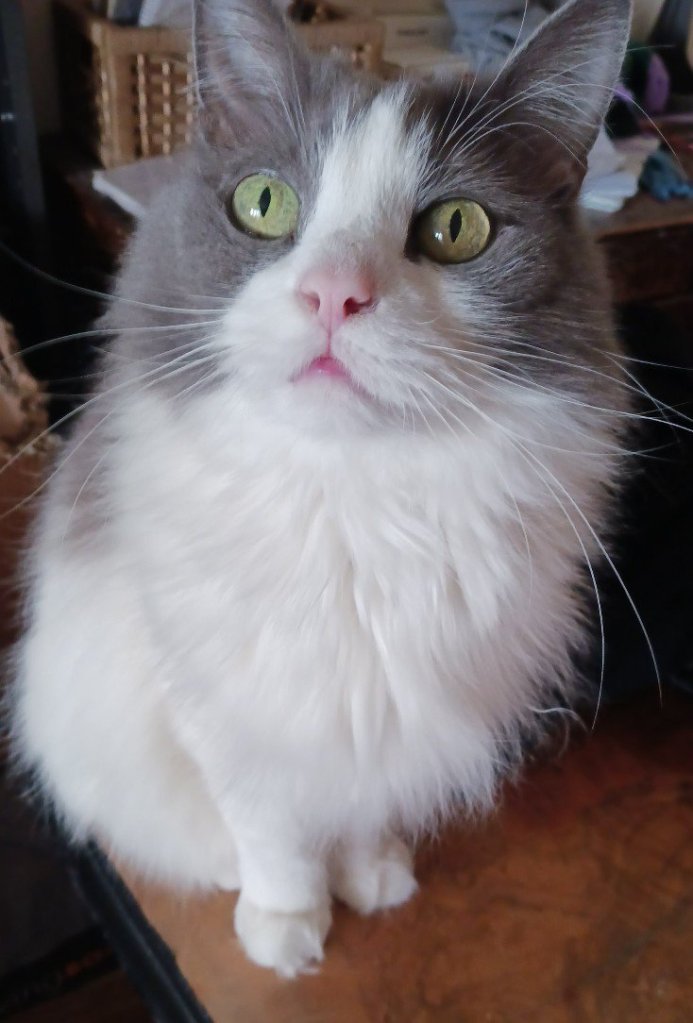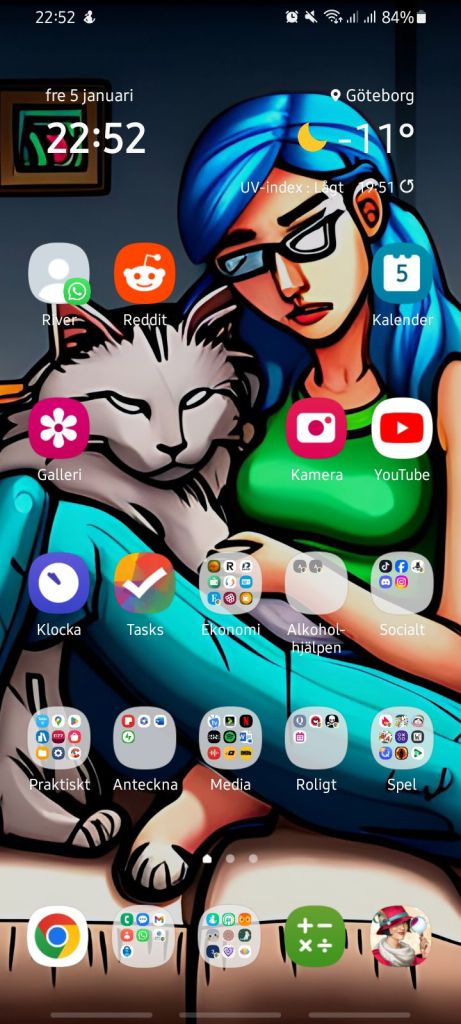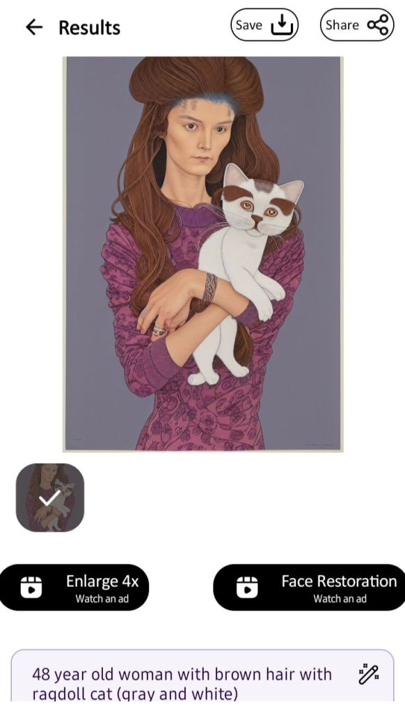 Eftersom jag inte har blått hår längre, så ville jag ha en ny bakgrund på mobilen, så jag skrev ”48 year old woman with brown hair with one ragdoll cat”. Inte hittat rätt bild att byta bakgrunden med ännu.