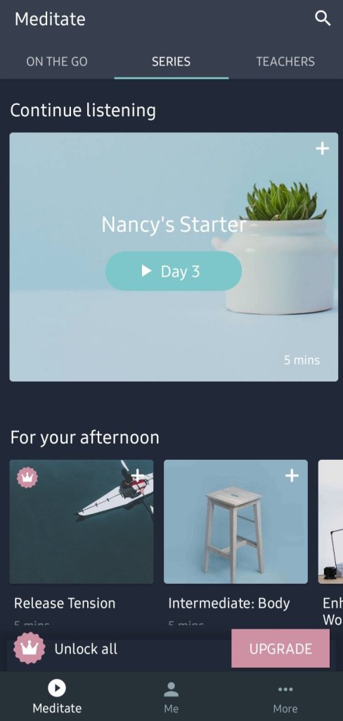 Tänkte att jag påbörjar meditationen igen. Det blev 14 min. Det var lite svårt att slappna av först, men efter några minuter var jag inne i det igen.