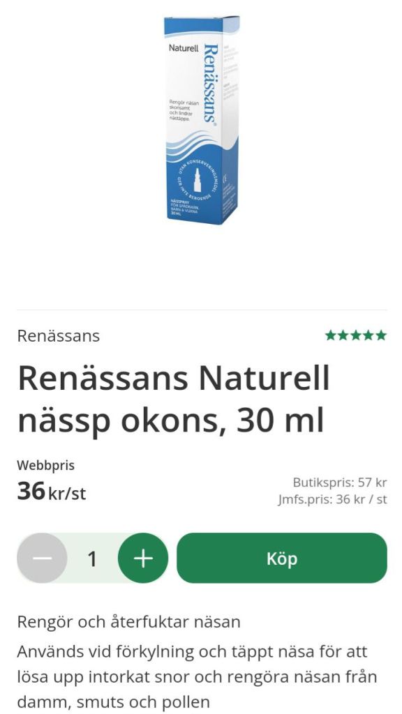 Kom hem och åt och vilade ett tag, städade (enligt planen i min ”rutin-app” Finch) genom att diska, plocka in disken, fixade golvet, rengjorde toan och duschrummet och sen promenerade jag till Backaplan. Var på bolaget (8 Sofiero), Rusta (garn), Dollarstore (vaniljcola, kattgodis) samt apoteket (nässpray).