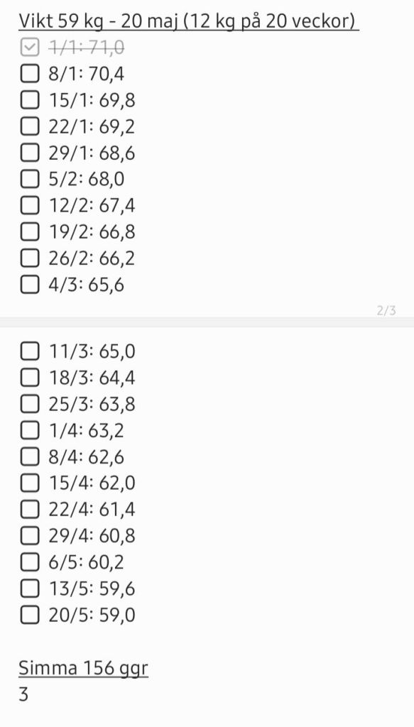 Vikt: 68,1 kg (ja, tyvärr är vikten på väg uppåt, alltså fel håll, men nog om det)