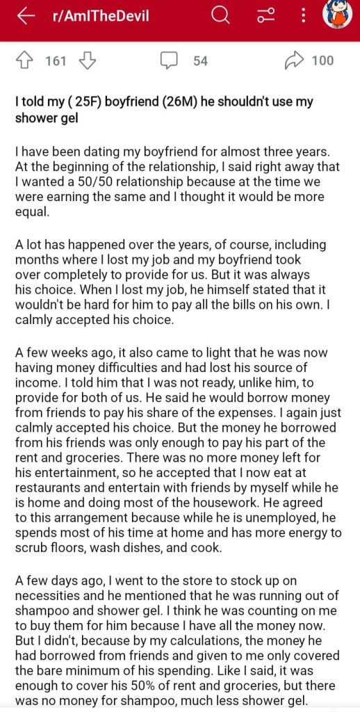 Som ni vet gillar jag r/amithedevil. Läste denna och (förmodligen ragebait) är jag glad att jag är så tvärtom.
