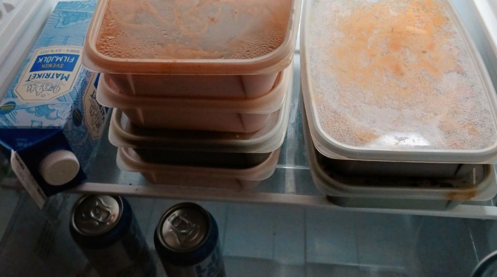 Gick upp kl. 7.30 som vanligt. Lite frustrerad eftersom jag vägt 78,8 i tre dagar nu, men det är nu jag måste fortsätta som jag gör och inte ge upp. Har börjat äta Nutrilett varannan dag och varannan dag äter jag max 1000 kcal. Har börjat använda min nya frys, invigde den med nylagad korv stroganoff. Har kollat på YouTube resten av kvällen, men blir nog tidig kväll.