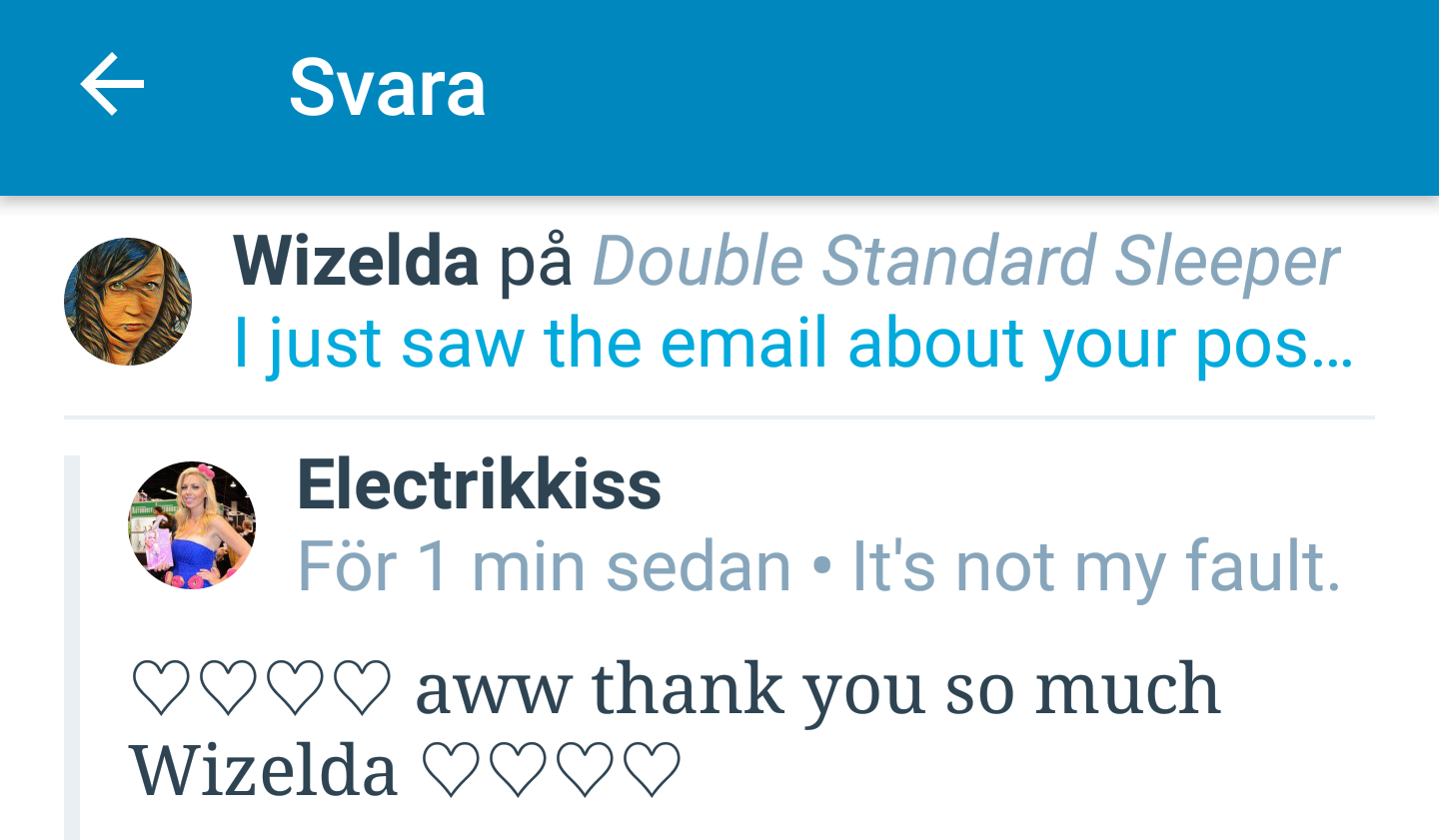 Så, that’s it, en wall of text, if there ever was one. Har säkert glömt något jag har tänkt om hela detta debacle, men nu släpper jag detta. En catharsis för mej, i form av ett blogginlägg, helt enkelt! Hoppas ni andra inblandade, på samma sätt som jag, kan låta varandras existenser sakta försvinna in i evig glömska – helt enkelt låta minnena av varandras existenser och våra korta inslag i varandras liv ”fada bort” och bli som en minnen av en dröm, där vi inte längre minns om vi någonsin träffats eller om det är något konstigt hjärnspöke eller kanske någon historia man läst. Jag kommer aldrig frivilligt att dra in någon av er i mitt liv igen och hoppas att ni kan göra mej samma tjänst. Våra liv är förevigt separerade och våra vägar kommer aldrig mer att korsas. Ok?