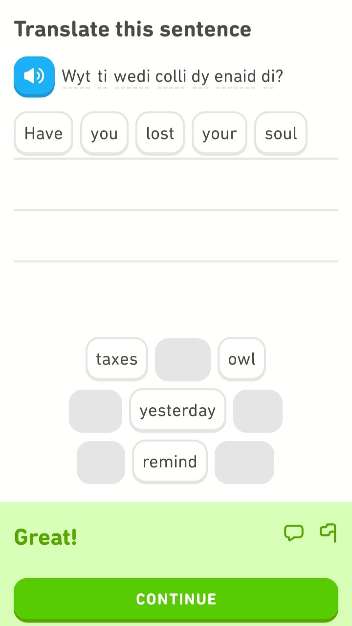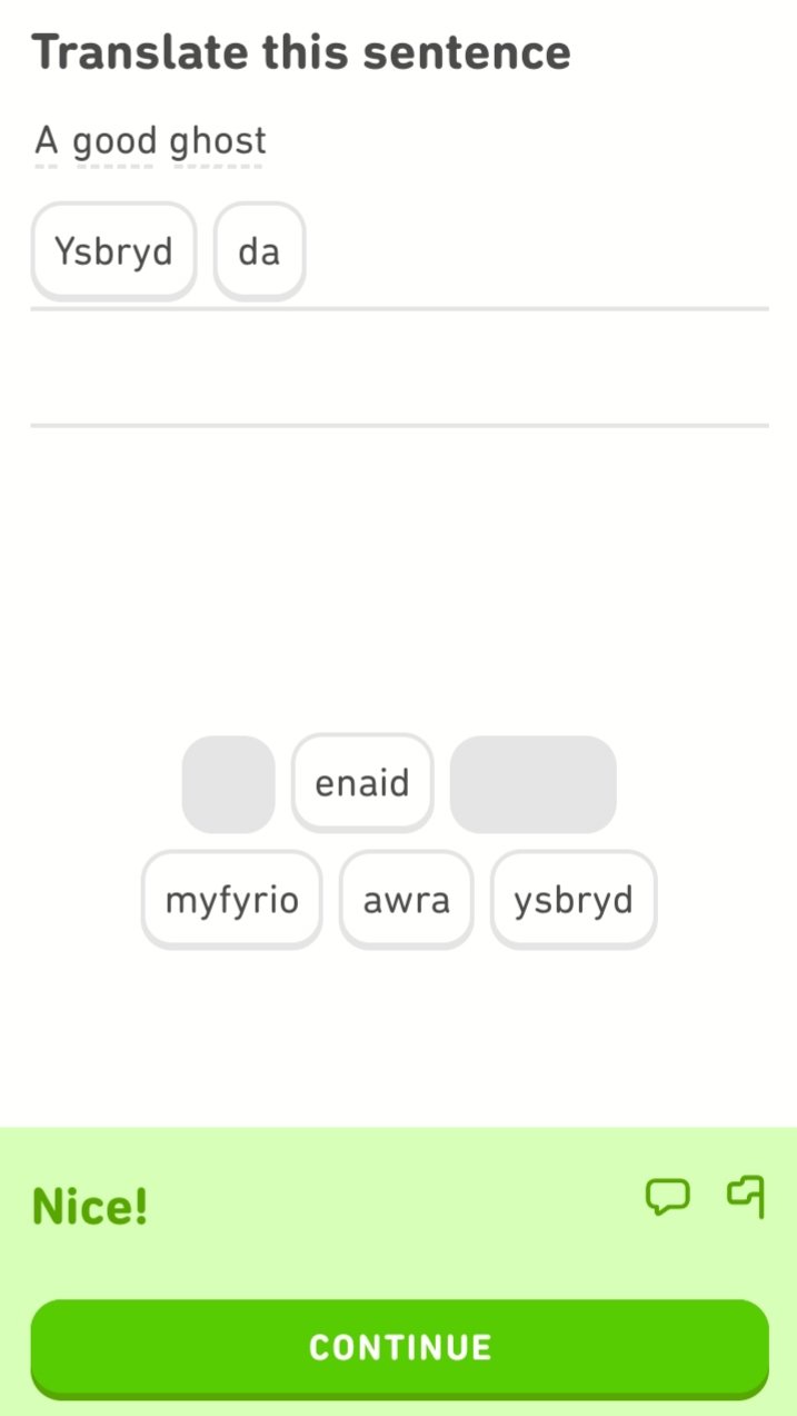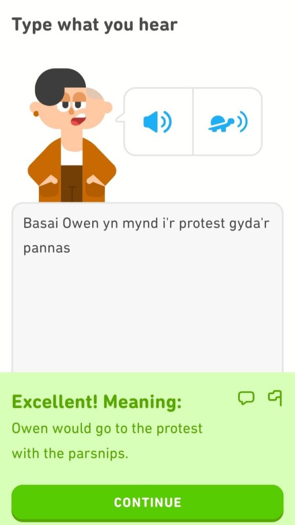 Spelet går bra hahaha…Har lärt mej en massa nyttiga fraser på Walesiska…