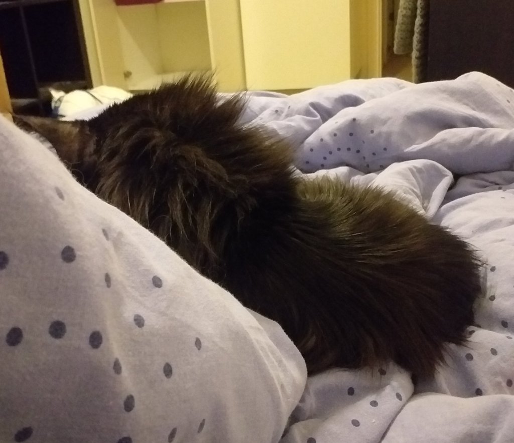 Jag är totalt utmattad nu efter allt. Fick det bästa avslutet på dagen med en gos-Spike uppkrupen vid benen och true crime på YouTube.