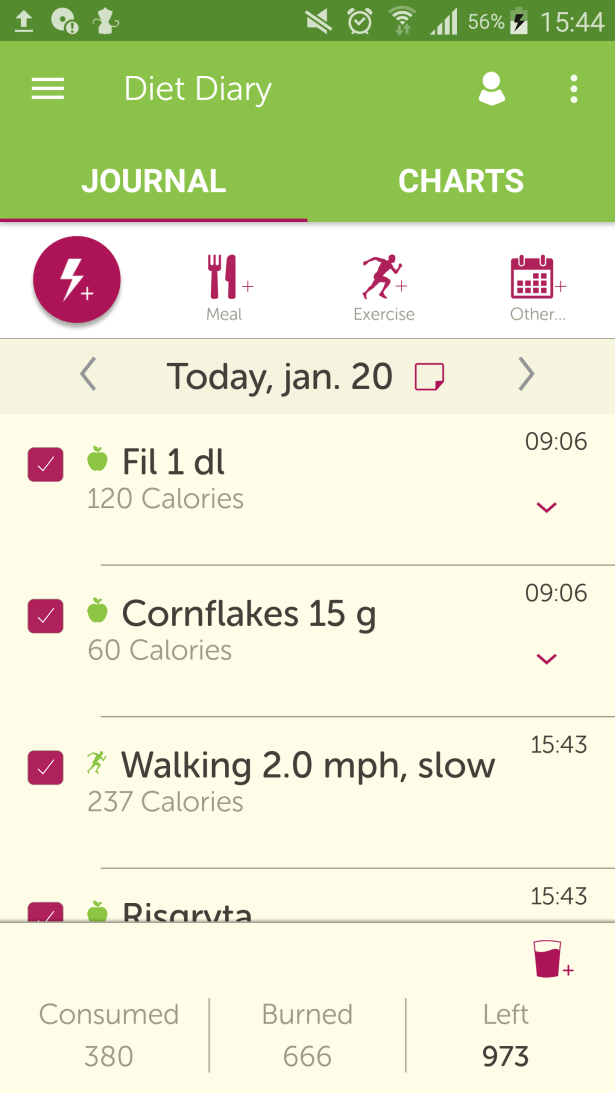 Har förbränt 666 kcal hittills idag, enligt appen.