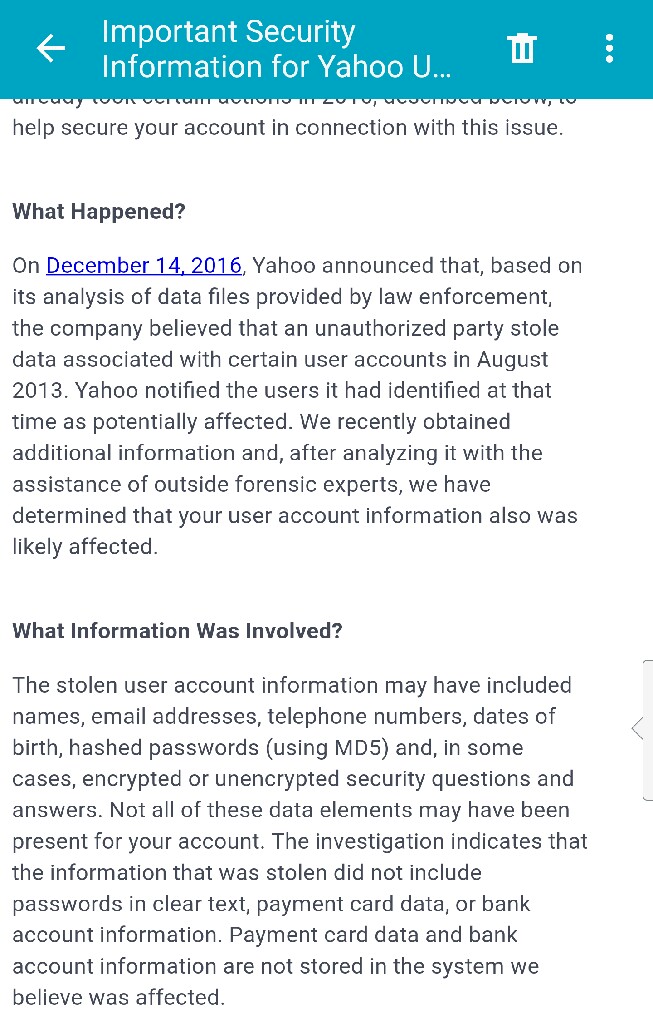Enda anledningen till att jag ens har ett konto är för att jag för sex år sedan ville använda Flickr för att dela foton, vilket krävde ett Yahoo-konto (precis som i dagens läge med Google alt. Facebook). Jag har inget att sno, men jag fick mejlet lik förbannat. (Använder folk verkligen yahoo mail fortfarande, på riktigt? Eller Hotmail, btw?).