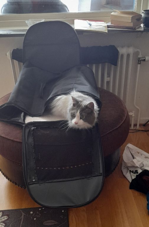 Felix ägarinna har gått bort, så han fick flytta hem till mej. Han är tio år och halv ragdoll, halv angora, fattade jag det som. Ska bli jättekul att lära känna en ny kisse och jag hoppas att han kommer att trivas här.