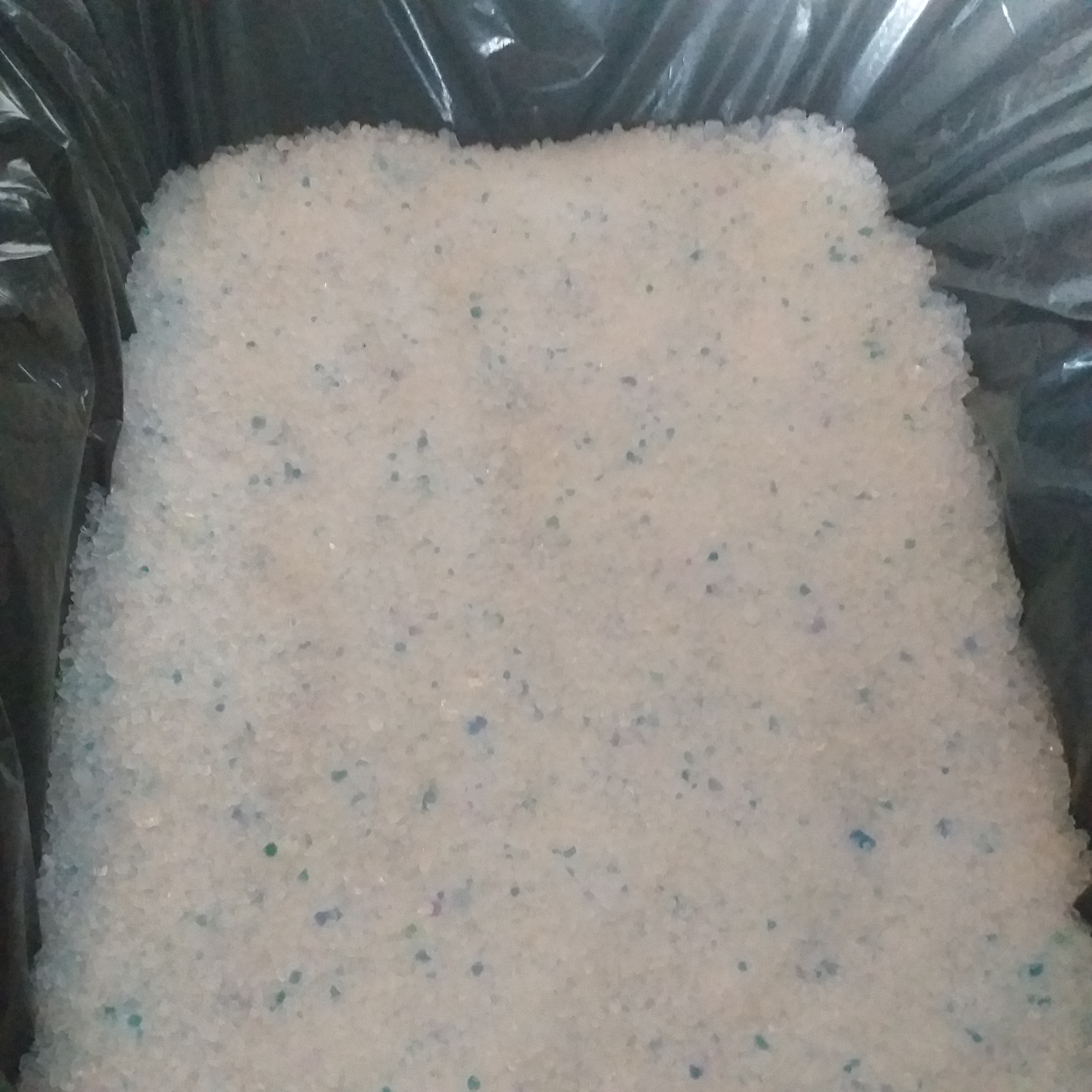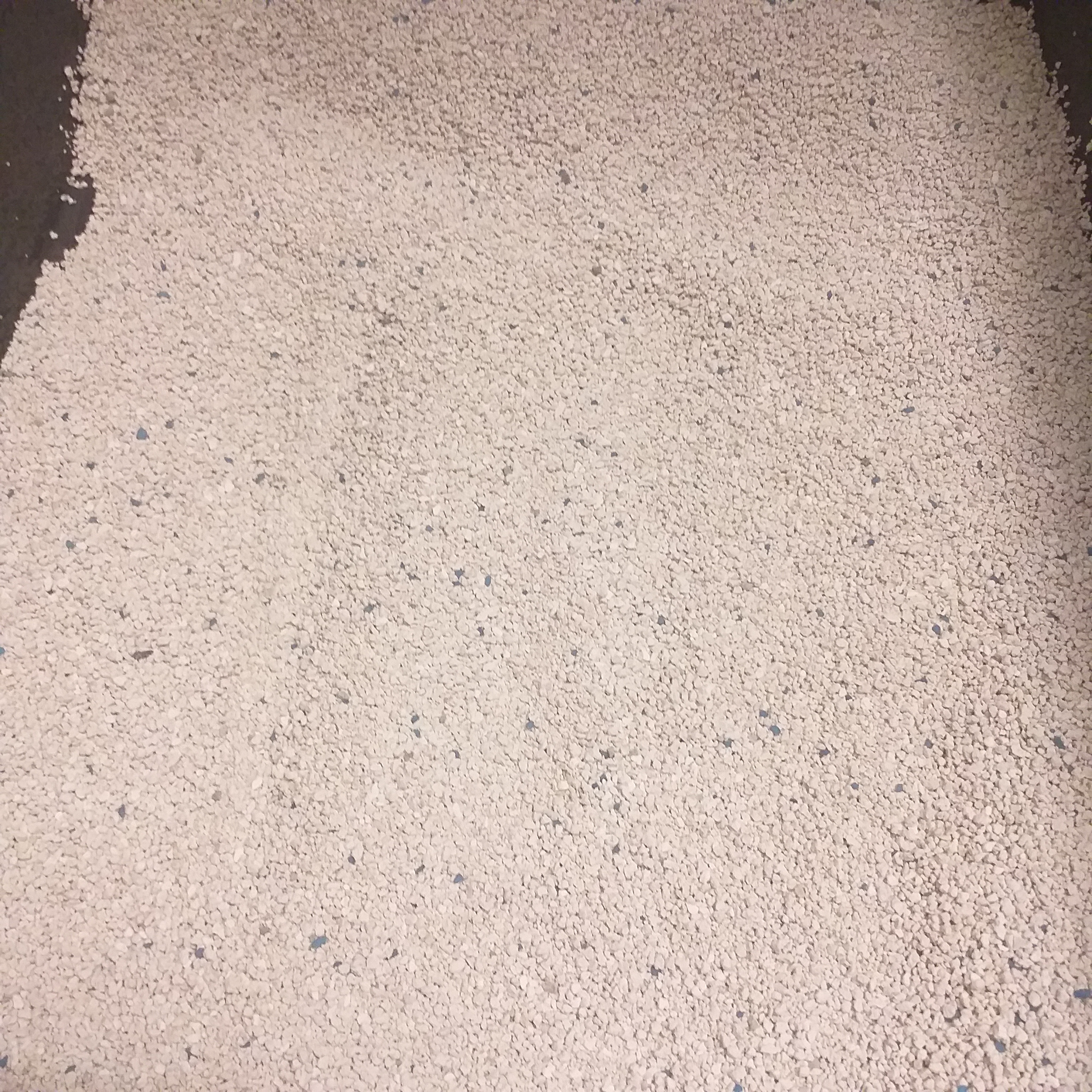 Intryck: Dom här kristallerna blir intressant att se hur Spike reagerar på. Dom dammade nåt otroligt när jag hällde upp dom. Består av kristaller i olika storlekar och färger från vitt till blått. Jag gav upp den här sanden på tredje dagen eftersom Spike vägrade pissa i den och bajsade även på fel ställe. Jag gissar nu på att det hela beror på hur mycket sanden dammar. Spike har väl en känslig nos. Inga klumpar bildas eftersom det är kristaller. Positivt för sanden var i alla fall att den höll sej i lådan och flög inte iväg överallt.