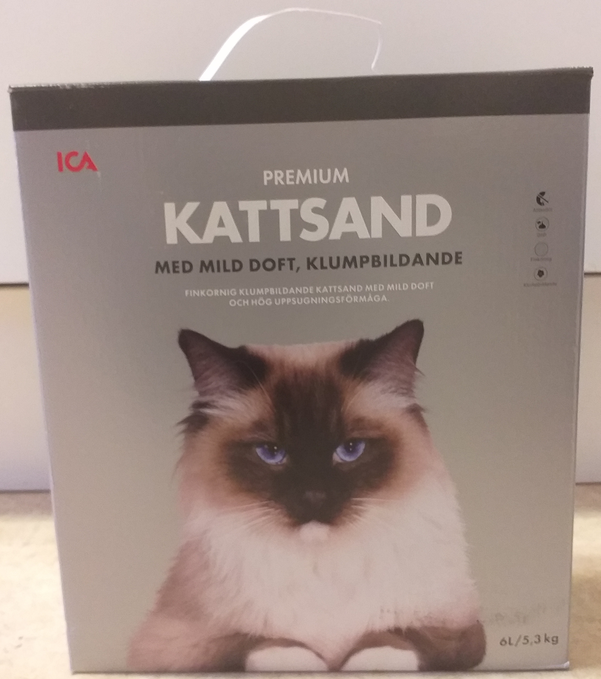 ICA Premium Kattsand med mild doft, klumpbildande 6 L. Köpt på ICA för 60,90 kr (10,15 kr/L).