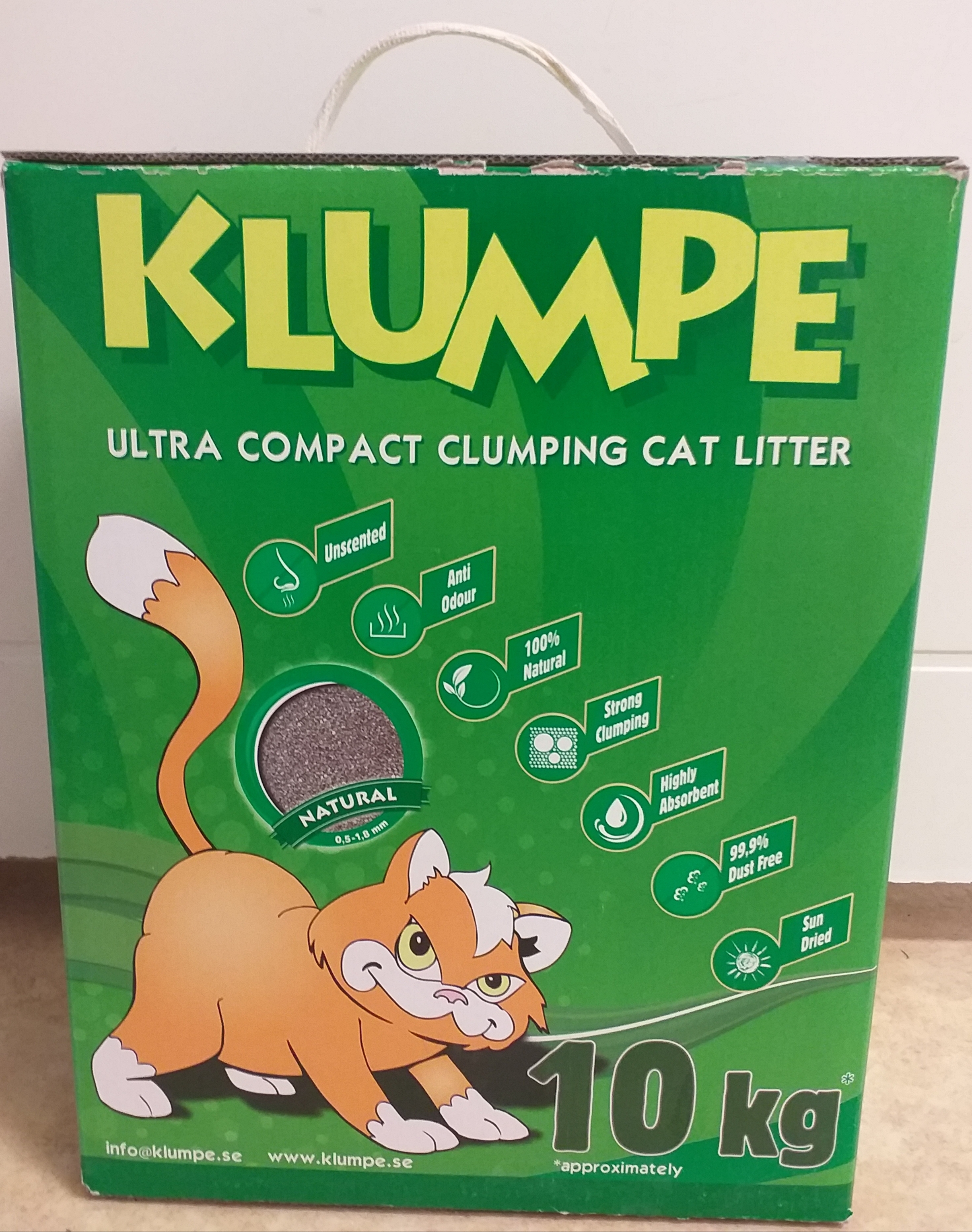 Klumpe 10 kg. Köpt på Rusta för 59,90 kr (5,99 kr/kg). Ordinarie pris är 79,90 kr (7,99 kr/kg).