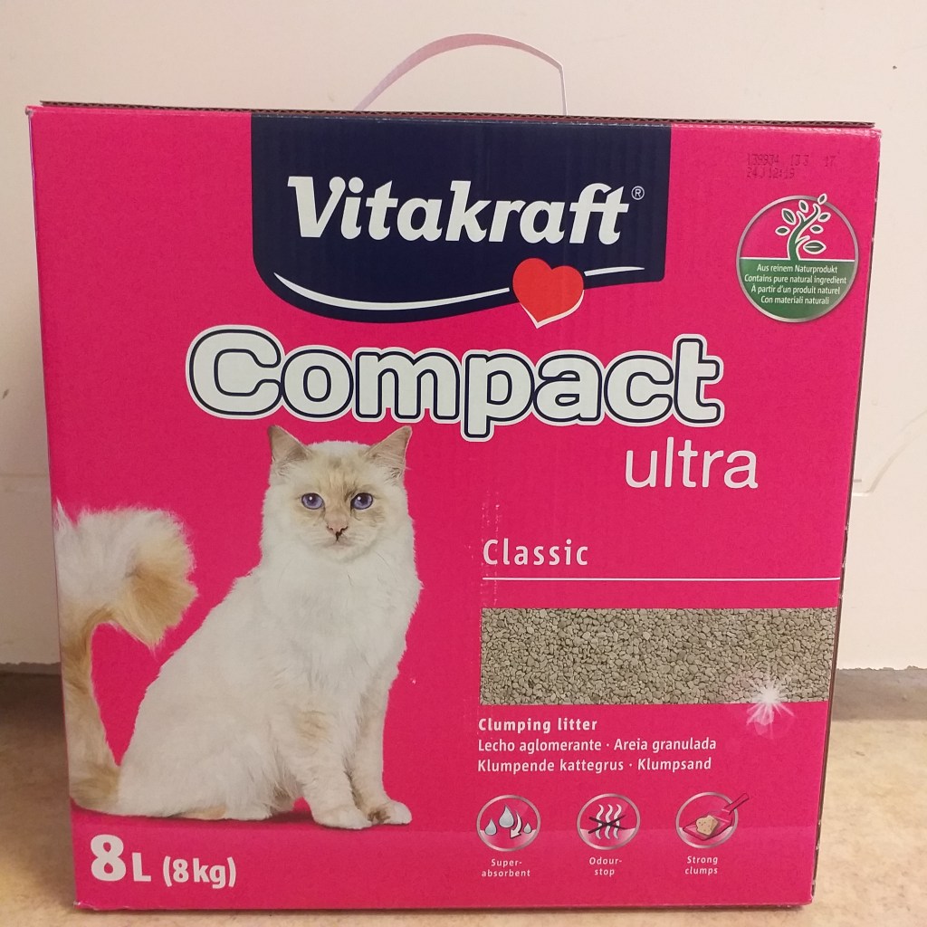 Vitakraft Compact Ultra Classic 8 L (8 kg). Köpt på Willys för 71,90 kr (8,99 kr/L).