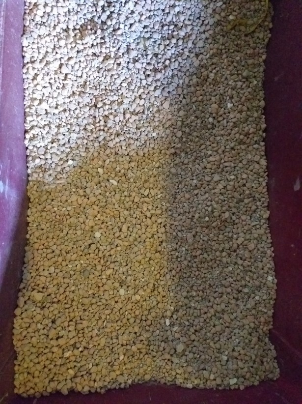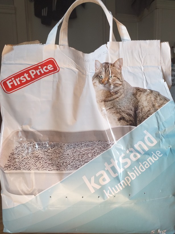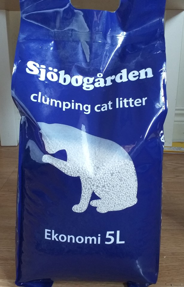 Intryck: Dammade inte när man hällde upp den, ingen speciell lukt. Lite grövre (inte stora) kulor jämfört med de två senaste, men inget negativt i det. Klumparna som bildas är lite kletiga och har en tendens att fastna i botten på lådan, vilket gör det lite jobbigare att plocka ur dem. På grund av att det fastnade hela tiden fick jag knappt upp några hela klumpar och det blev en massa småklumpar överallt i lådan. Spike skötte sej en enda dag av sju, så den här var inte populär.