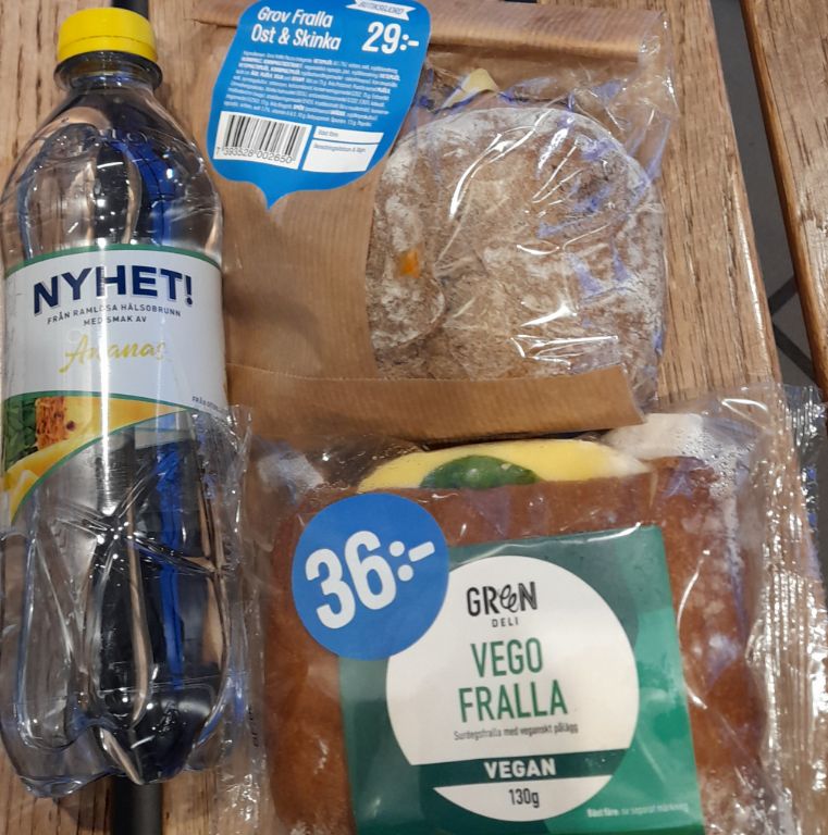 Åkte hem, men jag ångrade att jag inte hade haft med mej badkläderna och kunde ha tagit simningen på vägen hem (lärdom till nästa vecka). Hämtade bikinin och vände i dörren. Var typ tre pers som motionssimmade, så det var skönt, men ”hopp & lek” var öppet, så det var extremt högt ljud, plask och liv som stressar mej fruktansvärt. Efter simningen tog jag en sväng förbi apoteket och Willys (köpte mer Nutrilett).