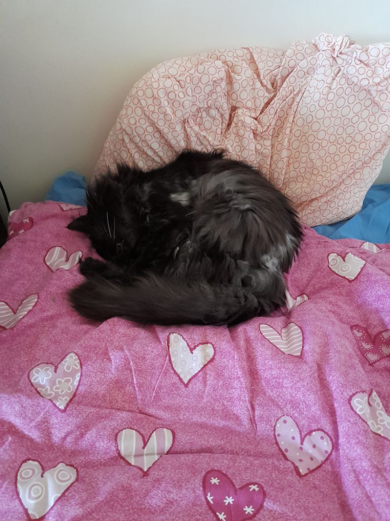 – Spike är gammal och kommer dö snart: jag låtsas som ingenting just nu, men jag vet att jag kommer ta honom till veterinären när det behövs. Vill bara inte inse att han inte längre är min lilla kattunge.