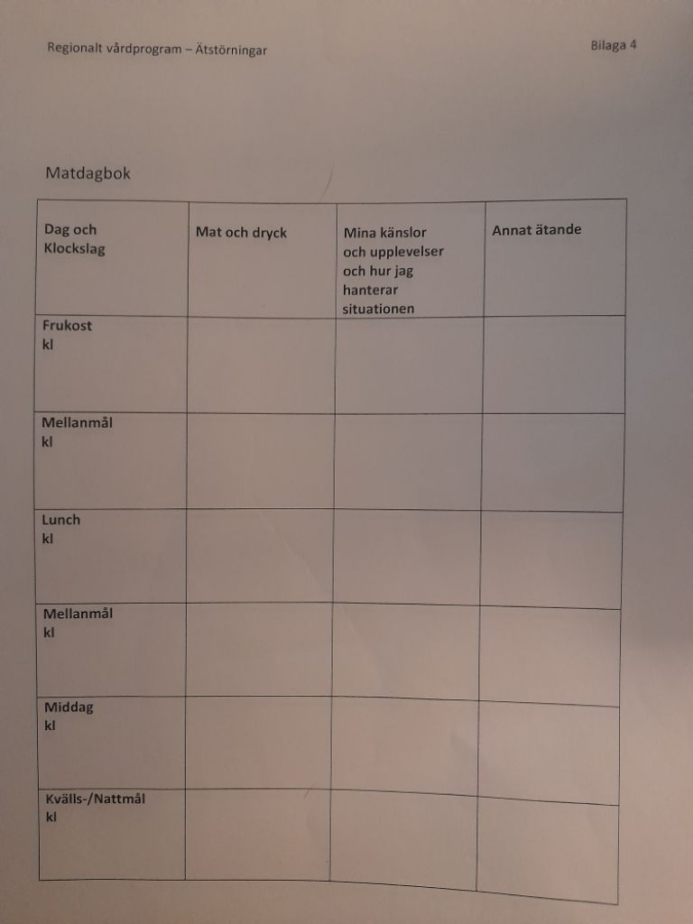 – Har en ätstörning och äter för att lindra ångesten: jag tror faktiskt att jag accepterar att jag har ätstörningen, men inte att det finns sätt att hantera det och att det inte är något jag ska klandra mej själv för.