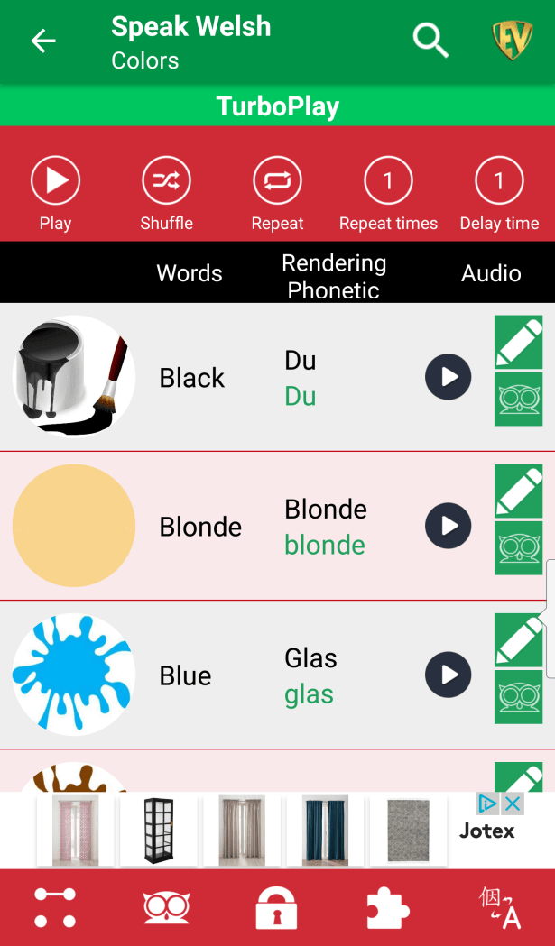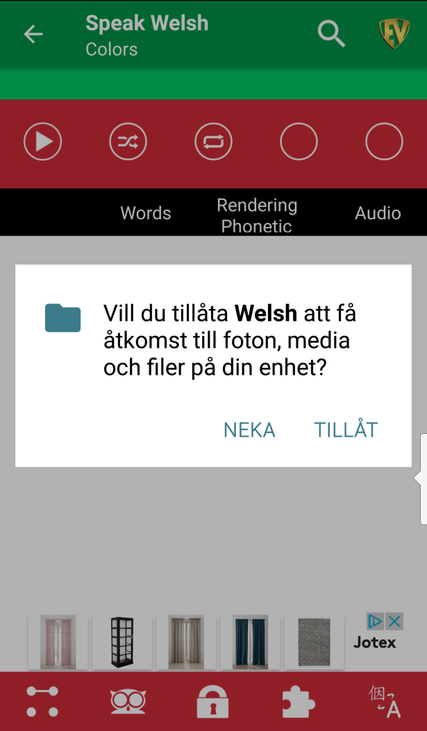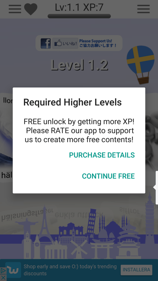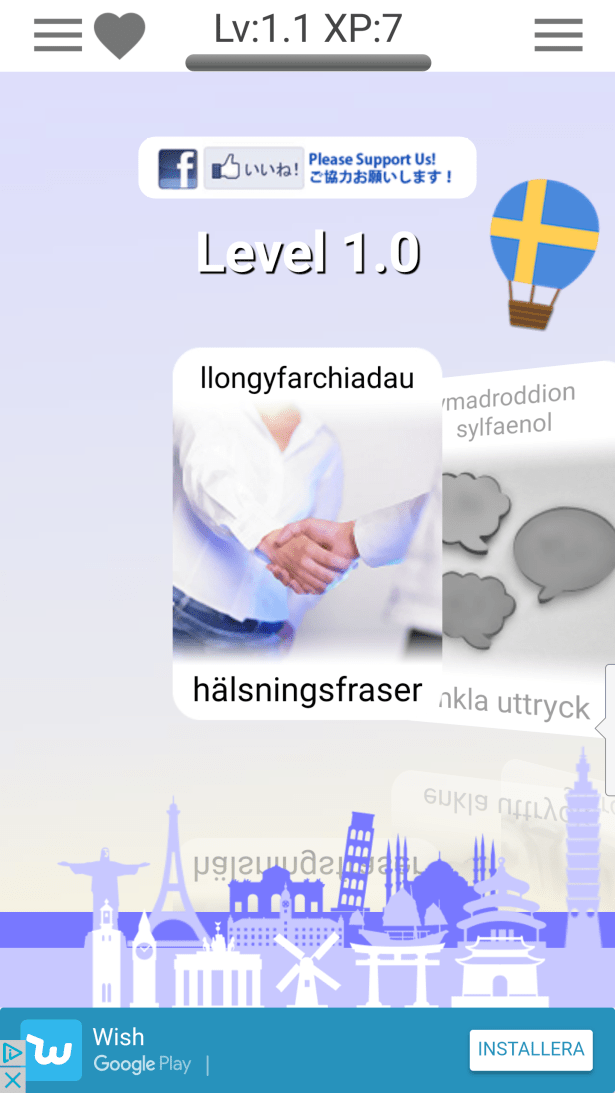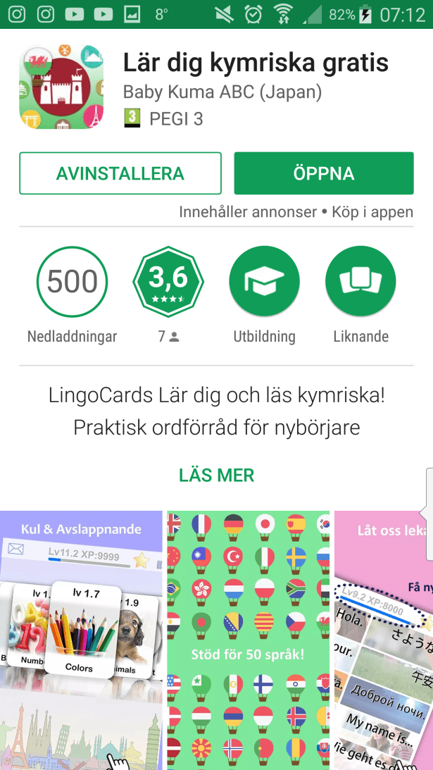 Kass till tusan. Först måste man ge appen tillåtelse till allt. Varför? Idioti. Sedan får man bara upp en lista med olika kategorier, typ färger, mat, kläder etc. utan någon tillstymmelse till ”lektion”. Ska jag bara lära mej random ord? Meningslöst.