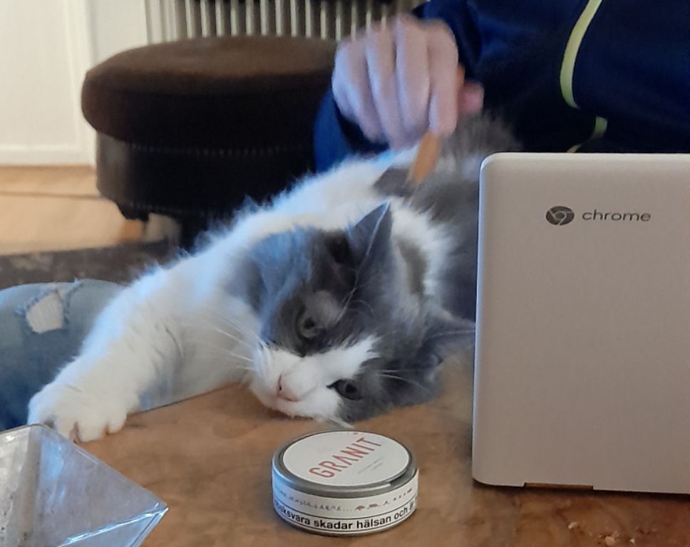 I väntan på tvätten avslutade jag det sista på överkastet som jag påbörjade 2019. Fille började klösa först, men la sej sen tillrätta.