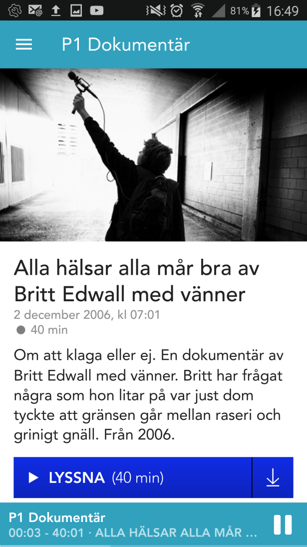 Har nu bara ätit lite och lyssnar på P1-dokumentärer. Virkar lite och sorterar fotona (bara 6000 st kvar…).