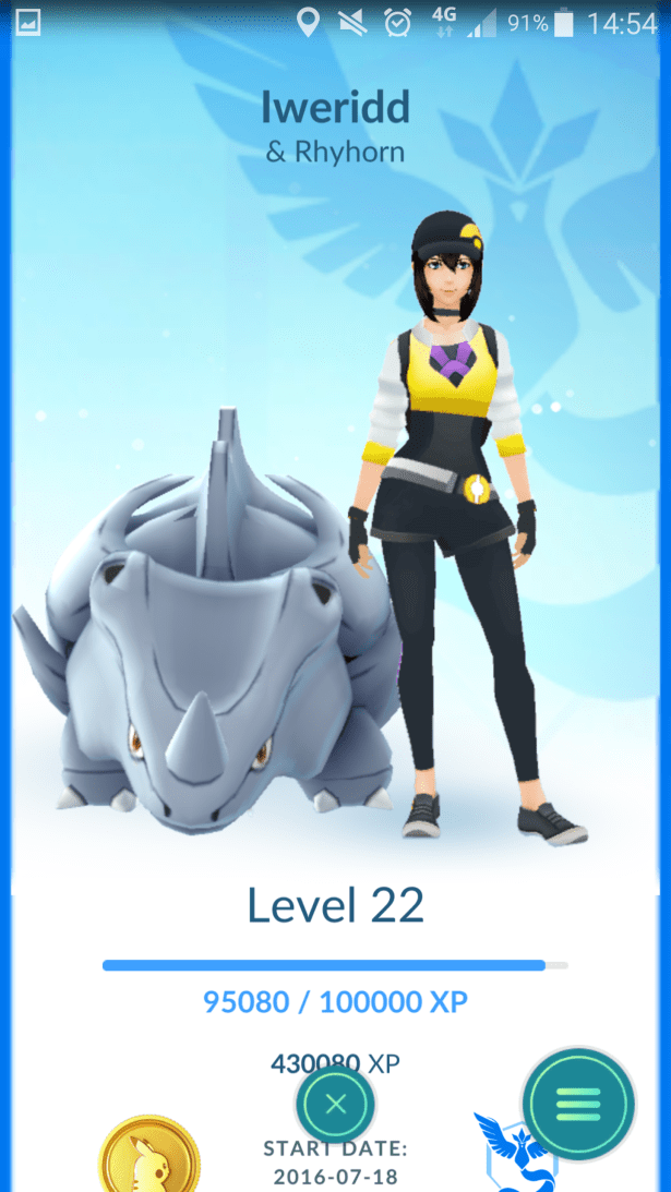 Efter jag kommit hem blev det ytterligare 3600 poäng genom evolve. Blev en ny till Pokédexet: Rhydon.