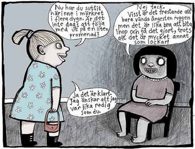 Nu måste jag ”skärpa till mej”, sluta vara ”psykiskt sjuk” och löjla mej med ”panikångest”, ”depressioner”, ”självskadebeteenden”, ”självmordstankar” och andra liknande hittepå.