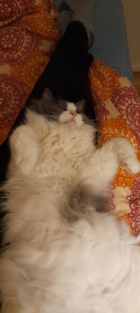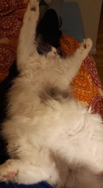 Var på Lidl för att handla deras billiga skitkaffe och hittade dessa cookies, som är likadana som Neo Pillows frukost”flingor”. Asgoda båda två!Såg ”Pahanhautoja” (2022) aka ”Hatching” eller ”Ruva” på svenska. Otroligt udda finsk skräckis, jag gillade den! 7/10.Sällskap av gulligaste Felix i sängen.