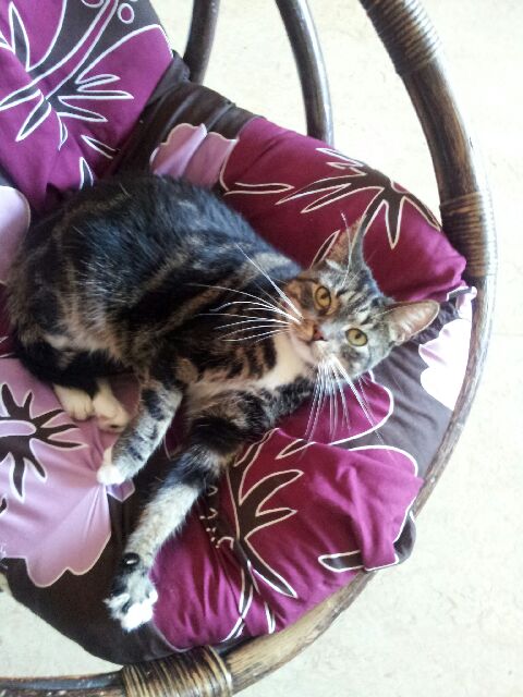 L har gått iväg en sväng, men kommer tillbaka. Jag kollar på tv och slappar med Spippo i soffan.