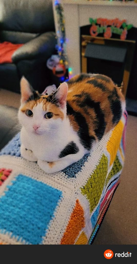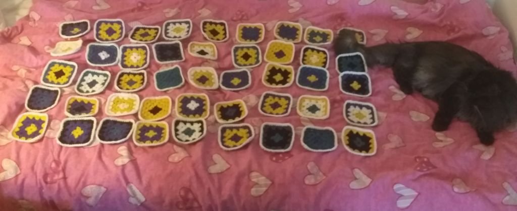 I väntan på tvätten avslutade jag det sista på överkastet som jag påbörjade 2019. Fille började klösa först, men la sej sen tillrätta.