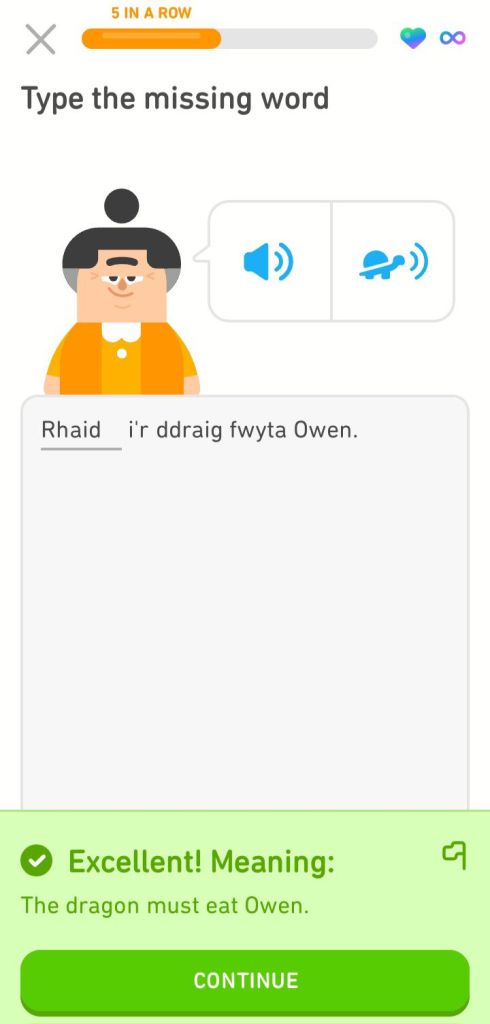 Finns 15 avsnitt.Fan, min nagel har gått av. Vad ska jag göra åt det här (kan ju inte dra av nageln så långt ner – aaargh)Årlig sammanfattning på Duolingo (jag började förresten att lära mej walesiska i mars 2019).Senaste virkade mössan (jag är nöjd). Jag vet att jag inte ser klok ut på bilden…Har äntligen kopplat in Wii:et (fick arslet ur vagnen vid kl. 23…) Fast det är nåt fel på färgerna (orkar dock inte kolla upp det nu). Jag är ändå extremt glad över att jag lyckades med hela grejen (plocka fram och dra sladdar, koppla sladdar rätt och få det att funka!) Jag vet att detta låter trivialt för dom flesta (speciellt för en tekniknörd) men depressionens grepp om hjärnan har fortfarande inte släppt. Alla såna här ”små” hurdles jag hoppar över ger mej positiv feedback och en push framåt, hur banala uppgifterna än låter. Jag kan faktiskt visa mej själv uppskattning inland!