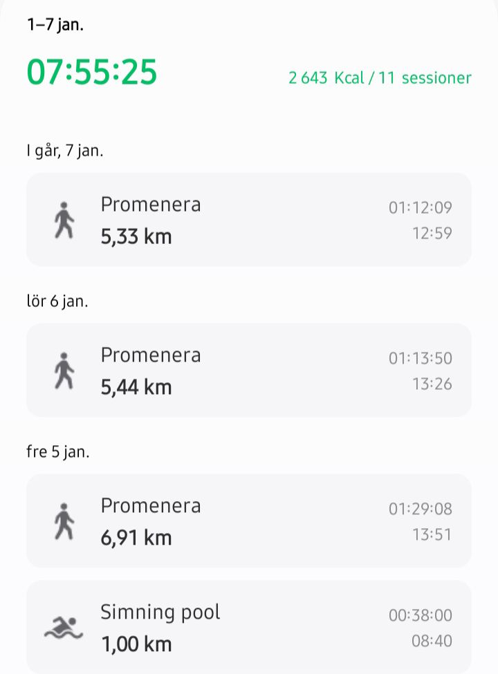 Klockan var ställd på åtta, men tog mej upp först 9.30. Släpade mej iväg till badhuset vid 10.30. Mycket folk – beror säkert på att det är nytt år…