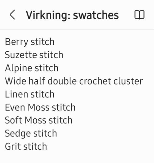 Är uppe i 77 st swatches nu och har börjat göra dom alla enklaste stitches också, som single crochet, half double crochet etc.