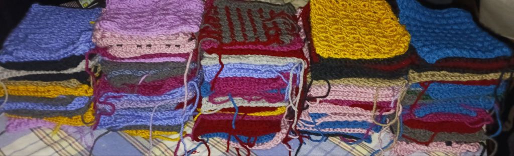 Det blir mycket hantverk här. Detta är 94 st swatches till ett blivande lapptäcke.