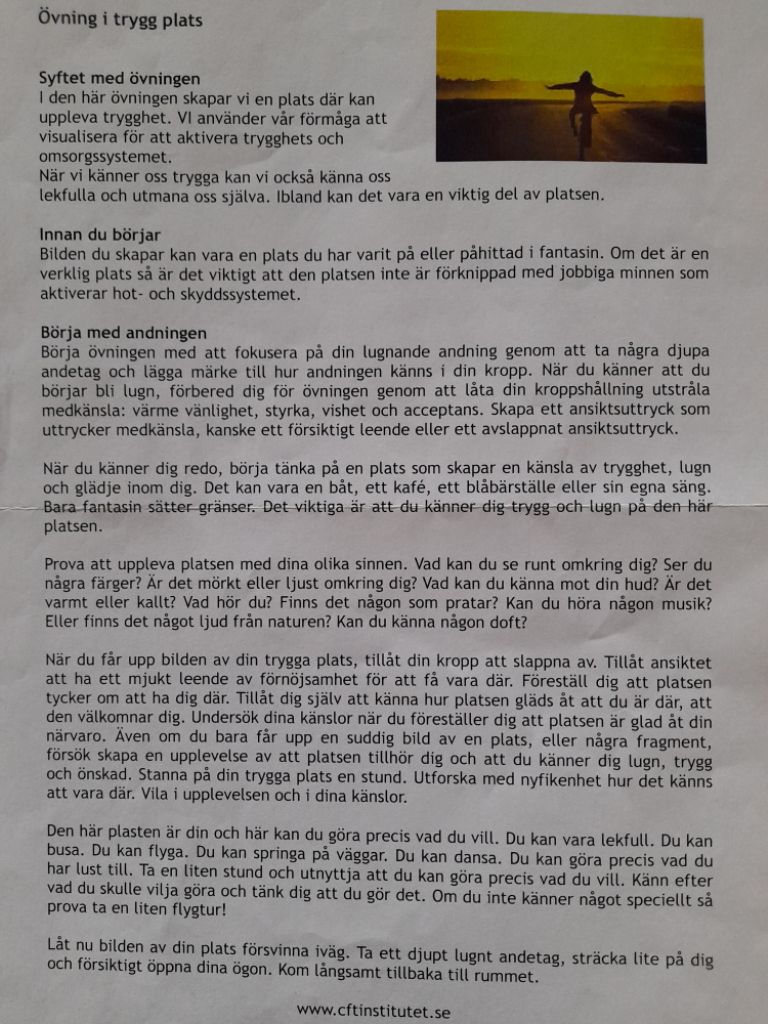 Eftersom jag har haft problem med att ta itu med meditation på sistone, så tog jag fram ett annat papper inom KBT:n att använda mej av (åtminstone idag):