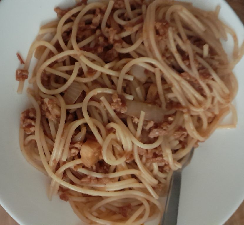 Kom hem med två maträtter att laga: vegofärs och spaghetti, samt linsgryta. Jag hade räknat ut att jag max fick göra av med 200 spänn och det blev 182 kr. Bör ha mat i en vecka nu, trots lite tråkigt med bara två olika, men, men… Fixade färssåsen med Vemondos veganska formbara färs, som jag aldrig hade testat innan och det blev riktigt bra.