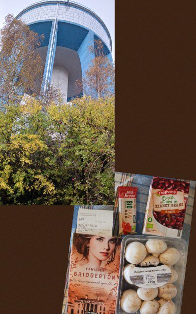 Kom hem och åt och vilade ett tag, städade (enligt planen i min ”rutin-app” Finch) genom att diska, plocka in disken, fixade golvet, rengjorde toan och duschrummet och sen promenerade jag till Backaplan. Var på bolaget (8 Sofiero), Rusta (garn), Dollarstore (vaniljcola, kattgodis) samt apoteket (nässpray).
