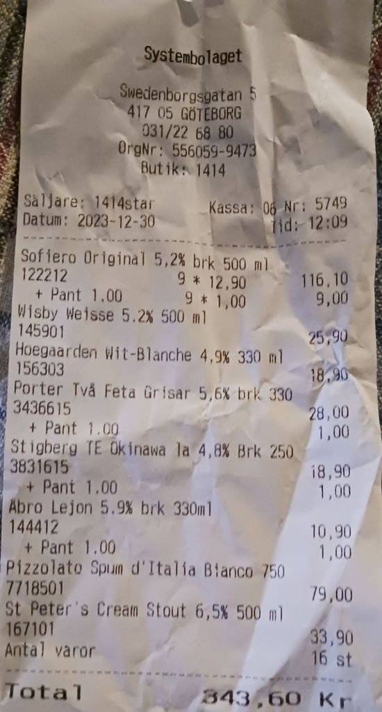 Åkte sen direkt till bolaget och köpte några öl.