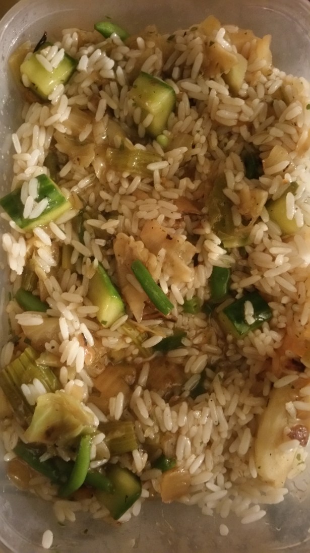 Lagade grönsaksgryta med ris och hade därefter storkok där jag lagade tre andra rätter och frös in.