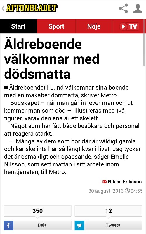 Så, min poäng…? Har ni så jävla lite tid att ni inte ens kan göra texten ”er egen”, vad är då poängen? Vi kan Google-översättninga själva om det behövs. Skriv bara ”X har dött, klicka här för att få veta mer” (länk till TMZ)”.