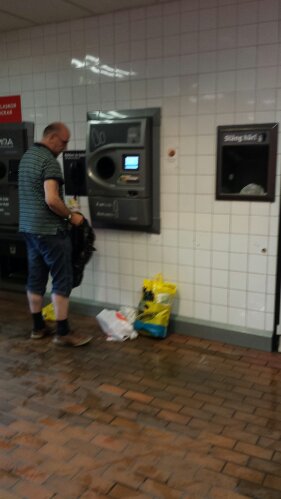 Över tio minuter i kö till återvinningen, håller på att avlida av tristess.