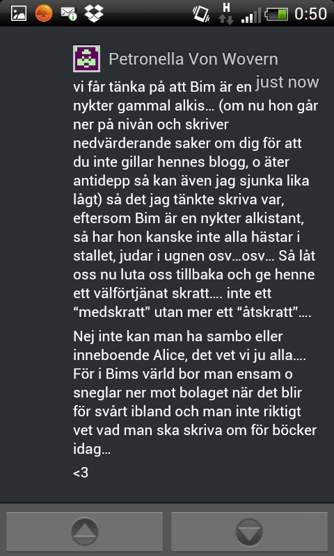 Jag tycker om att läsa bokrecensioner, och Bim tar dessa till en helt ny nivå. Glöm allt du lärde dej i svenska B: vad tyckte du om/ogillade med boken, vilka karaktärer var bra/dåliga, vad förde historien framåt, varför tyckte om/ogillade du boken etc.