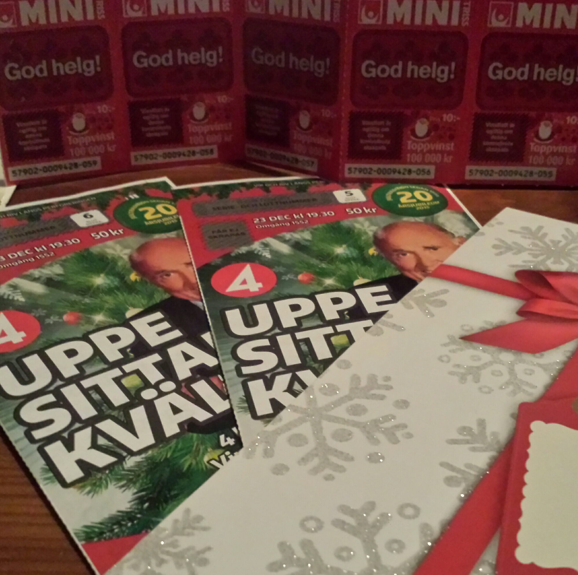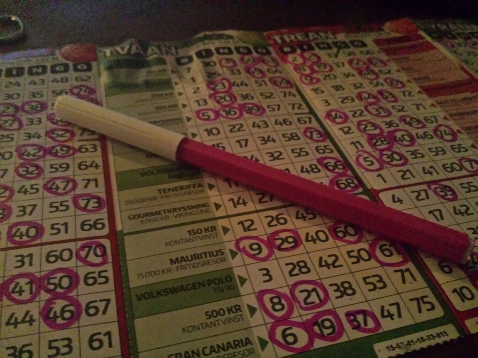 Öl (estniska Saku) från mamsen, kex, ostar, chips, dip och Bingolotto. Fulländad kväll!