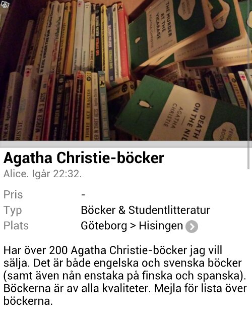 Efter att jag lade upp min Agatha-annons på blocket, så har jag fått lite förfrågningarna. Detta föranledde en sortering av AC i bokstavsordning. Jobbigt…