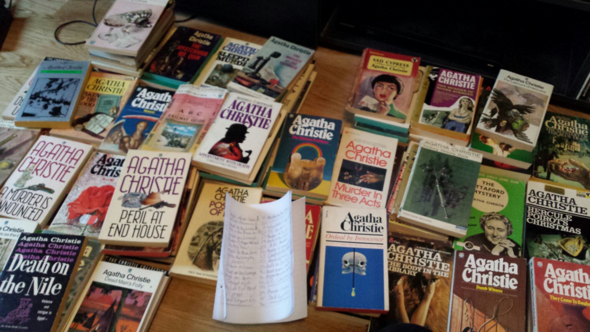 Efter att ha ärvt över 400 st Agatha Christie-böcker var jag tvungen att börja läsa. Sparade en av varje (har nu komplett samling på engelska) och har försökt sälja av resten. Hade nog läst kanske tre eller fyra böcker av henne tidigare, men nu började jag från början. Är nu på bok 9, ”The Seven Dials Mystery”, bara 68 st kvar…