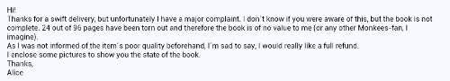 Av 196 sidor var 24 sidor utrivna. Boken är inte ens värt pappret den är tryckt på, än mindre värt nåt för en Monkess-samlare! Har mejlat och bett om full återbetalning.