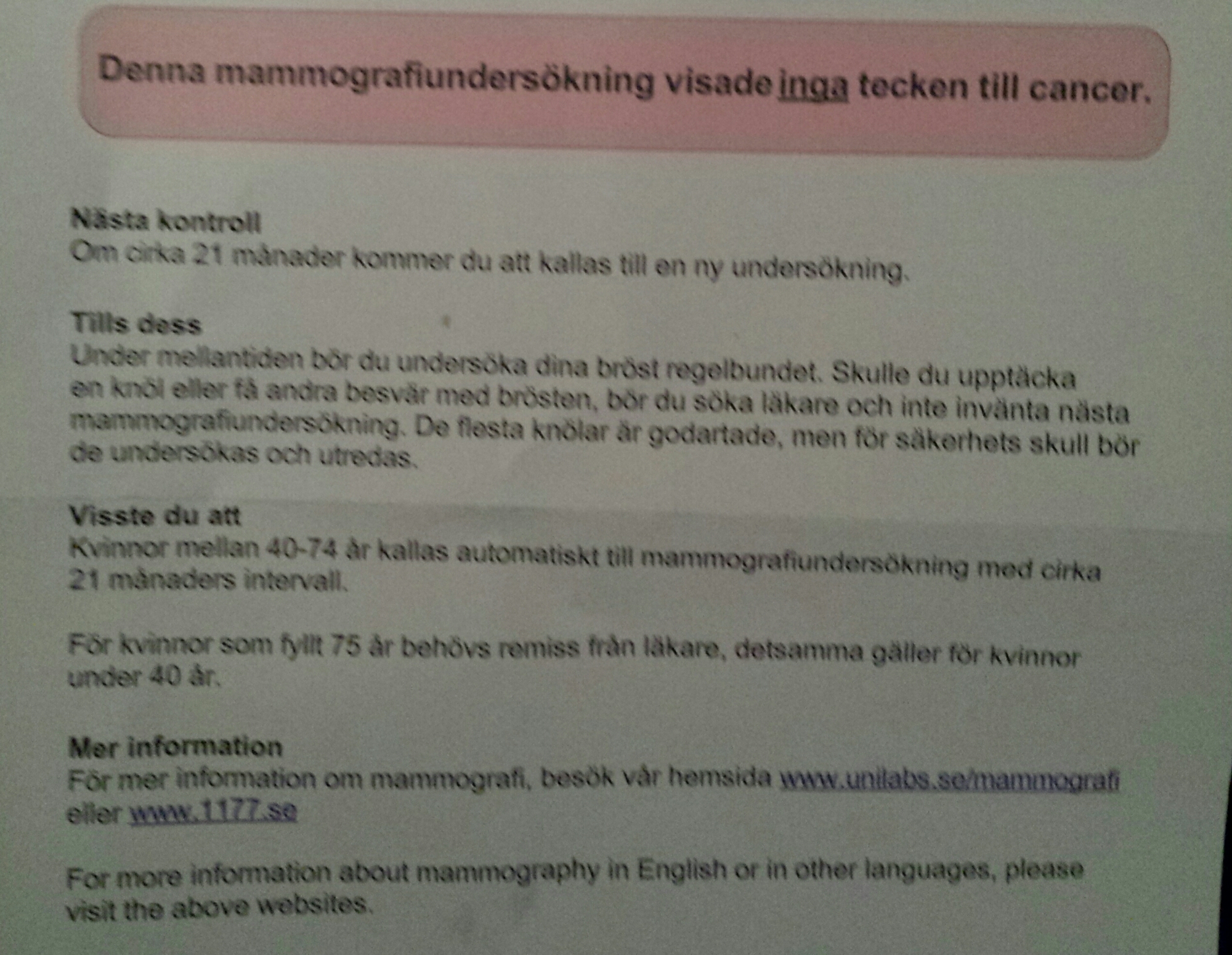 Mammografi – All clear 10 november 201510 november 2015Penardun Personligt Etiketter:Bröstcancer, Mammografi Lämna en kommentar 👍 Vill du verkligen dela? Tjohoo! Tryck: Klicka för att e-posta en länk till en vän (Öppnas i ett nytt fönster) E-post Dela på TumblrMerTweet Klicka för utskrift (Öppnas i ett nytt fönster) Skriv ut Klicka för att dela på Reddit (Öppnas i ett nytt fönster) Reddit PocketGilla Laddar in …