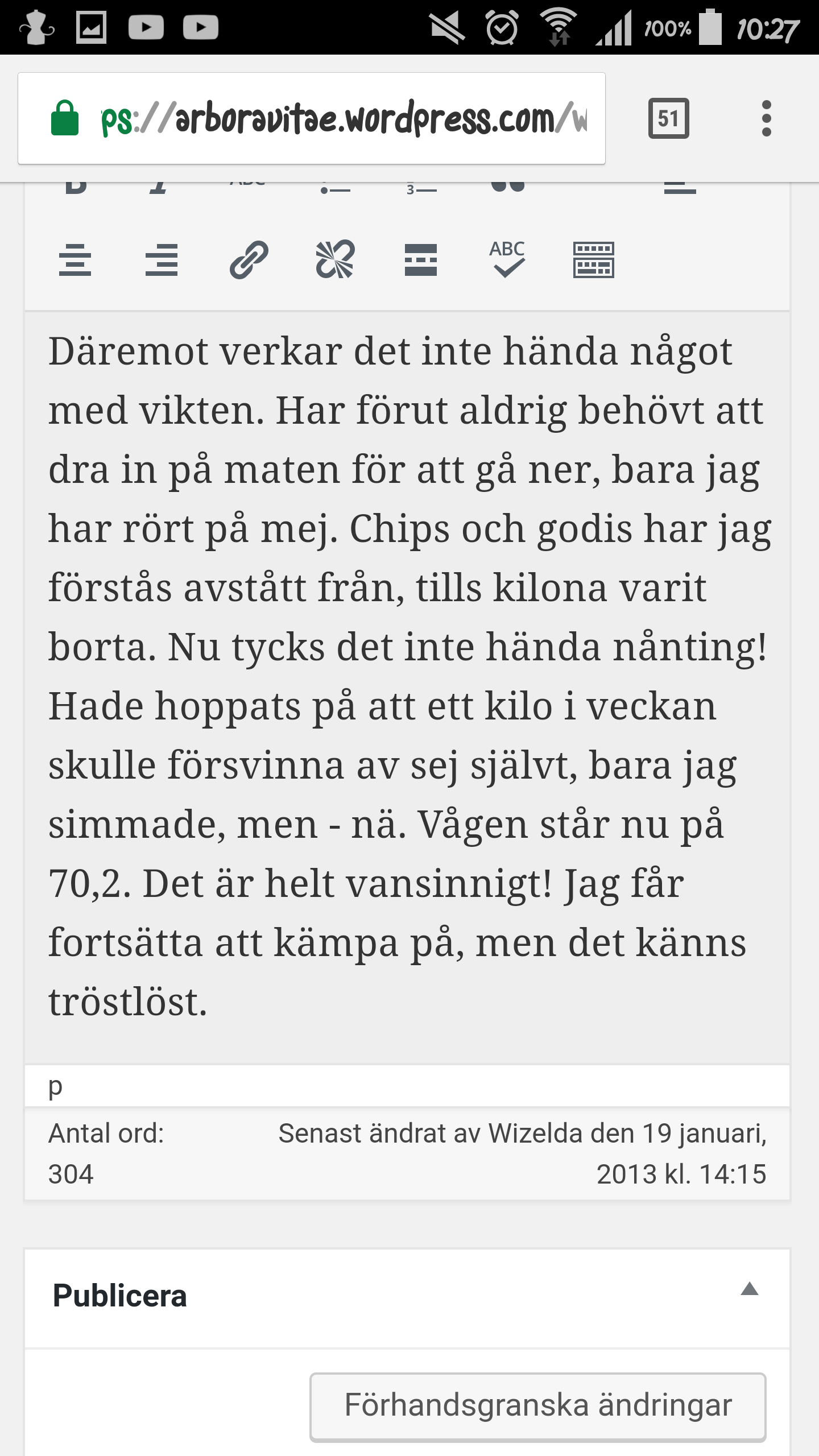 Ja, tanken är god, men läs min bakgrund! Jag har gått upp 20 kg pga deras idéer om antidepressiva. Först Mirtazapin, sen Cipralex och nu detta. Fattar de inte att min fetma bidrar till hur jävla dåligt jag mår! Hade jag åtminstone fått fortsätta vara smal, så hade det underlättat humöret väsentligt.