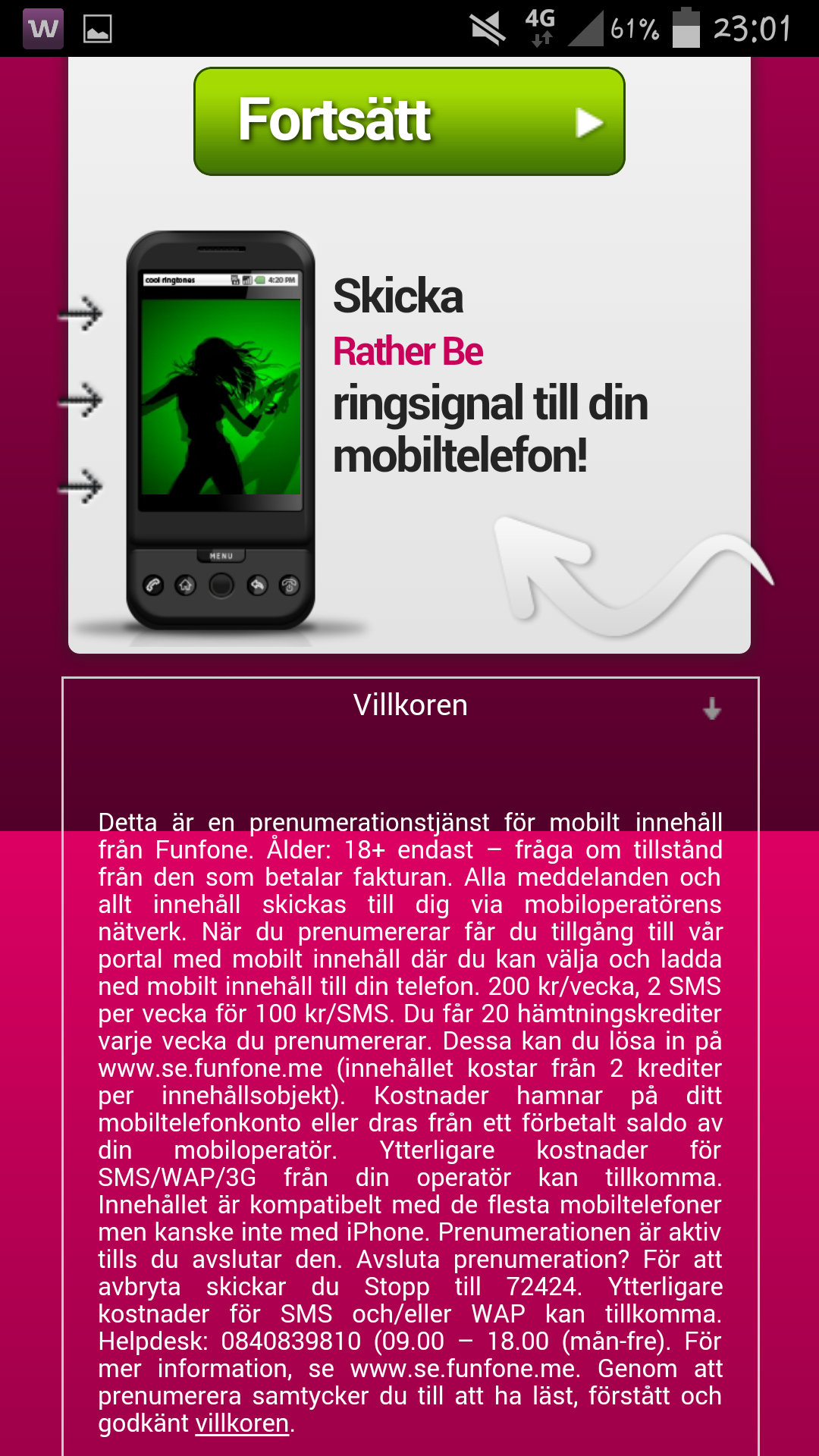 Letade ringsignaler 12 juli 201412 juli 2014Penardun Allmän frustration, Internetsidor, Scary Internet, Shopping Etiketter:Beware, Cool ringtones, Ripoff Lämna en kommentar Kolla detta: 200 kronor i veckan för att få tillgång till deras ringsignaler! WTF! Moral: läs alltid det finstilta Vill du verkligen dela? Tjohoo! Tryck: Klicka för att e-posta en länk till en vän (Öppnas i ett nytt fönster) E-post Dela på TumblrMerTweet Klicka för utskrift (Öppnas i ett nytt fönster) Skriv ut Klicka för att dela på Reddit (Öppnas i ett nytt fönster) Reddit PocketGilla Laddar in …