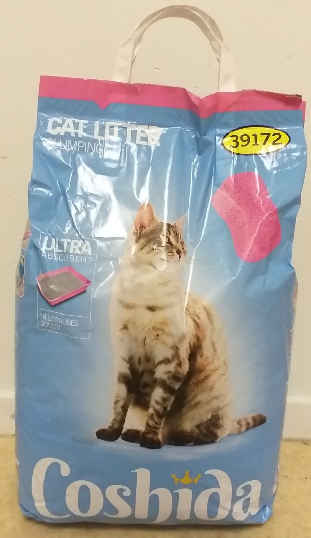Coshida Cat Litter Clumping 10 L köpt på Lidl för 44,90 kr (7,48 kr/L).