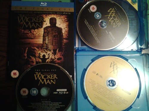 Är lite tveksam till att ”The Final Cut” ska vara (citat från DVDn) ”the finest and most complete version possible” eftersom det finns ett otal olika versioner av Wicker Man med olika längder. Däremot får jag nu med de två andra mest kända versionerna också, så detta borde sammanlagt vara den mest kompletta boxen i alla fall.