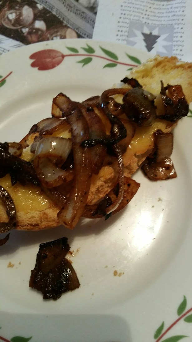 Mellanmål: baguette med stekt lök.